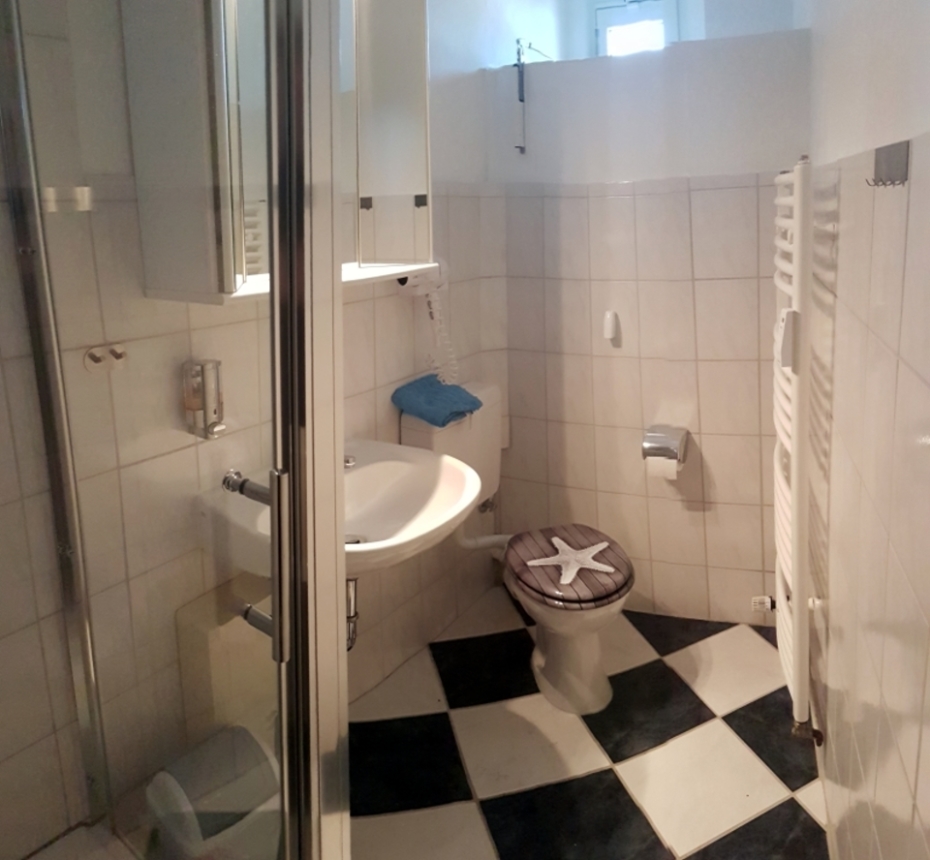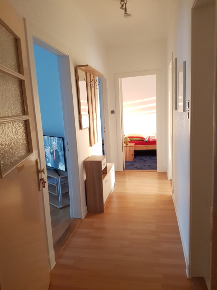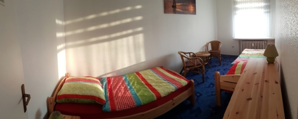 Ca. 65 m² große 3-Raum-Ferienwohnung für Nichtraucher im 1. OG mit kleinem Balkon zur Hofseite. Zwei separate Schlafräume, 1x mit einem Doppelbett und 1x mit zwei Einzelbetten. Wohnraum mit Kabel-TV und Radio, WLAN auf Anfrage. Küche mit E-Herd, Backofen, Kühlschrank, Mikrowelle und Geschirrspüler. Badezimmer mit Dusche, WC und Haarfön. Haustiere sind nicht erlaubt.