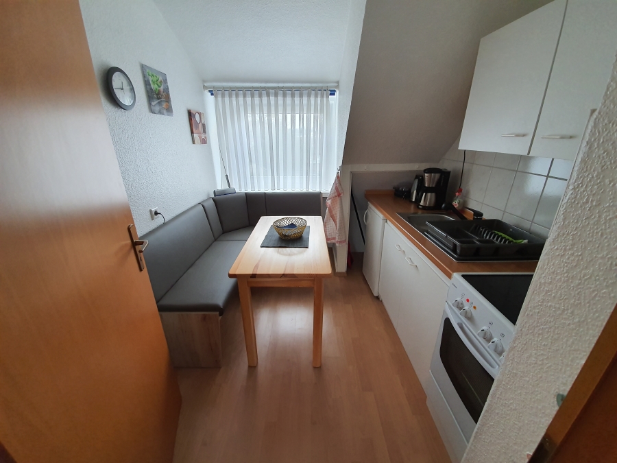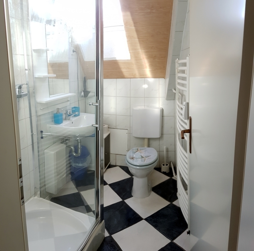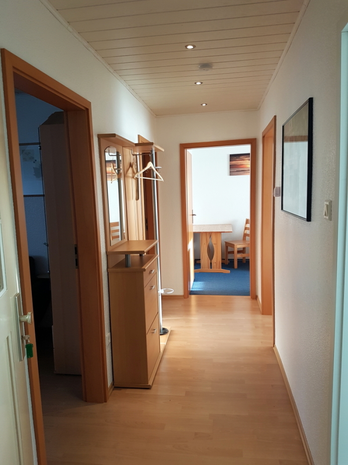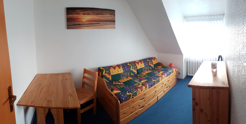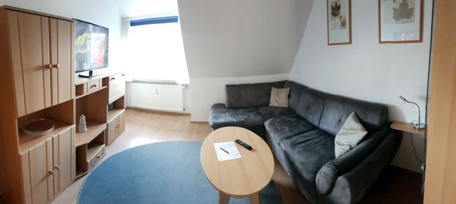 Ca. 50 m² große 3-Raum-Ferienwohnung für Nichtraucher im 2. OG. Zwei separate Schlafräume, 1x mit einem Doppelbett und 1x mit einem Einzelbett. Wohnraum mit Kabel-TV und Radio, WLAN auf Anfrage. Küche mit E-Herd, Backofen, Kühlschrank, Mikrowelle und Essecke. Badezimmer mit Dusche, WC und Haarfön. Haustiere sind nicht erlaubt.