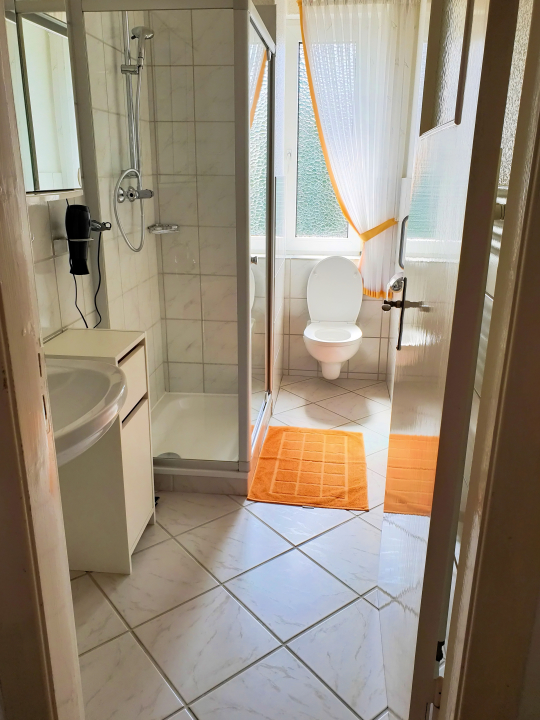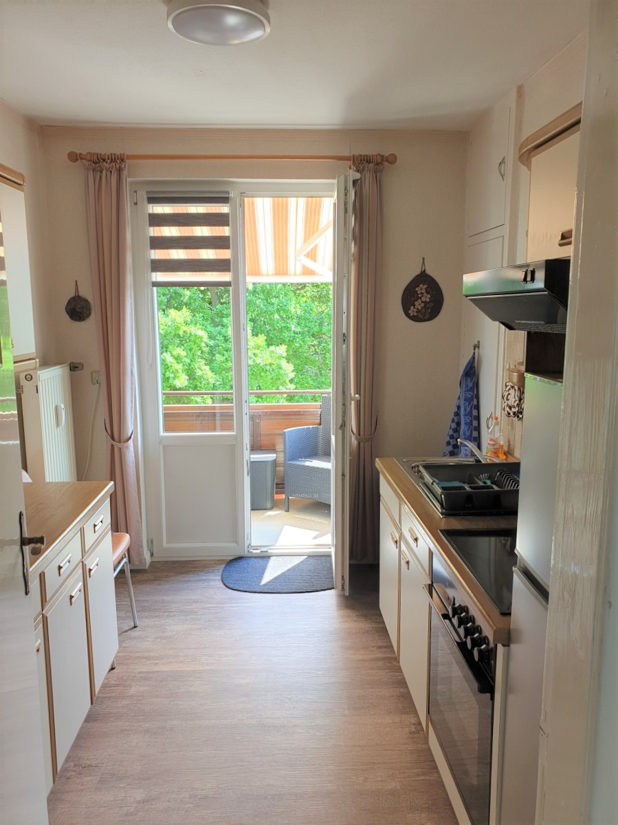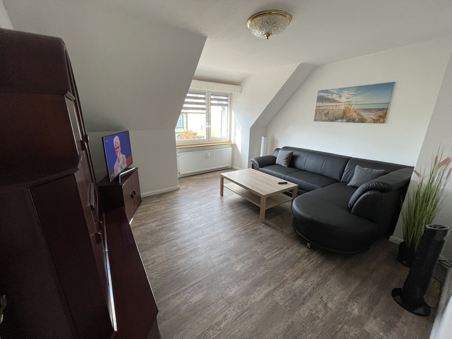 Ca. 65 m² große 4-Raum-Ferienwohnung für Nichtraucher im 2. OG für bis zu 3 Personen mit kleinem Balkon zur Hofseite. Zwei separate Schlafräume, 1x mit einem Doppelbett und 1x mit einem Einzelbett. Ein Esszimmer. Wohnraum mit Kabel-TV und Radio, WLAN auf Anfrage. Küche mit E-Herd, Backofen, Kühlschrank, Kaffeemaschine und Wasserkocher. Badezimmer mit Dusche, WC und Haarfön. Haustiere sind nicht erlaubt. 1 kostenloser PKW-Stellplatz.